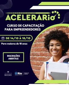 Estão abertas as inscrições para o Acelera Rio, curso de aprimoramento para quem já tem o seu próprio negócio e quer ampliar suas vendas. Promovido pelo Ministério do Trabalho e Emprego, em parceria com o Instituto o apoio da Secretaria Municipal de Trabalho e Renda (SMTE), o curso começa na próxima segunda-feira (dia 14/10) e vai até sexta-feira (dia 18/10). É preciso ter no mínimo 18 anos e já ser empreendedor para participar das aulas. Para se inscrever, gratuitamente, é preciso acessar o site http://www.projetoacelerario.com.br/.