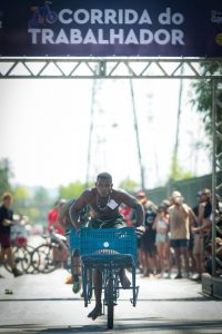 Corrida do Trabalhador trouxe disputa com bicicletas de carga. Entregador Diego Lopes, o Carcará, foi o vencedor Foto: Roberto Moreyra/SMTE