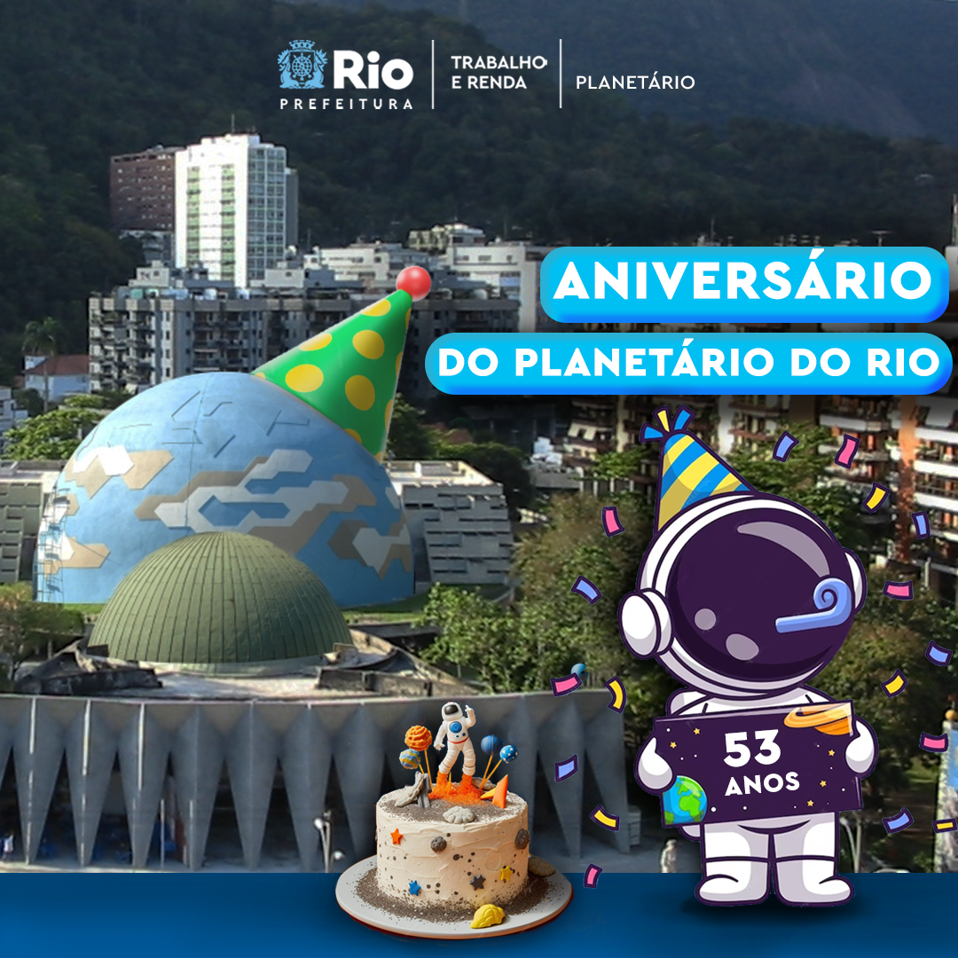 O Planetário do Rio chega aos 53 com fôlego de sobra. Prova disso é que no dia do seu aniversário, no próximo dia 19, serão realizados na Gávea espetáculo teatral, oficinas educativas sobre astronomia e meio ambiente, sessões de cúpula, premiação de concurso de astrofotografias, apresentação da banda da Guarda Municipal e festival de blues. Tudo de graça.
